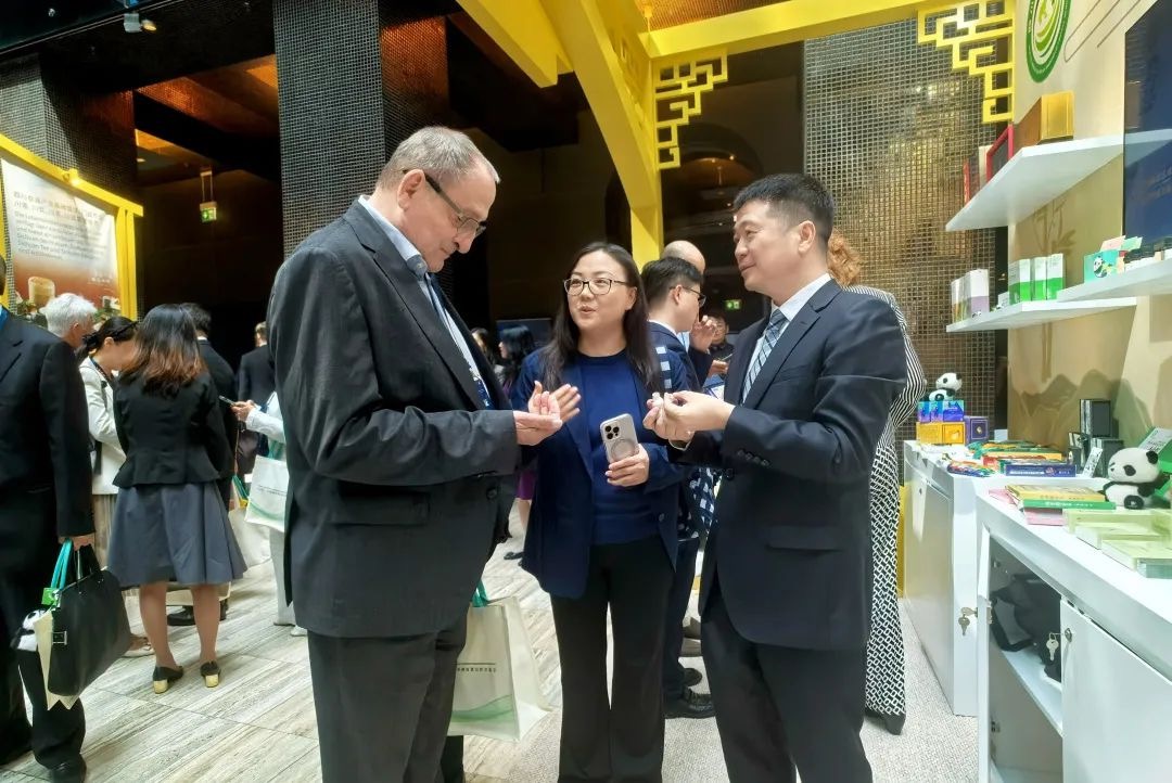 游勇向德國AVIAREPS公司負責人介紹集團情況和文創產品、精品旅游線路產品