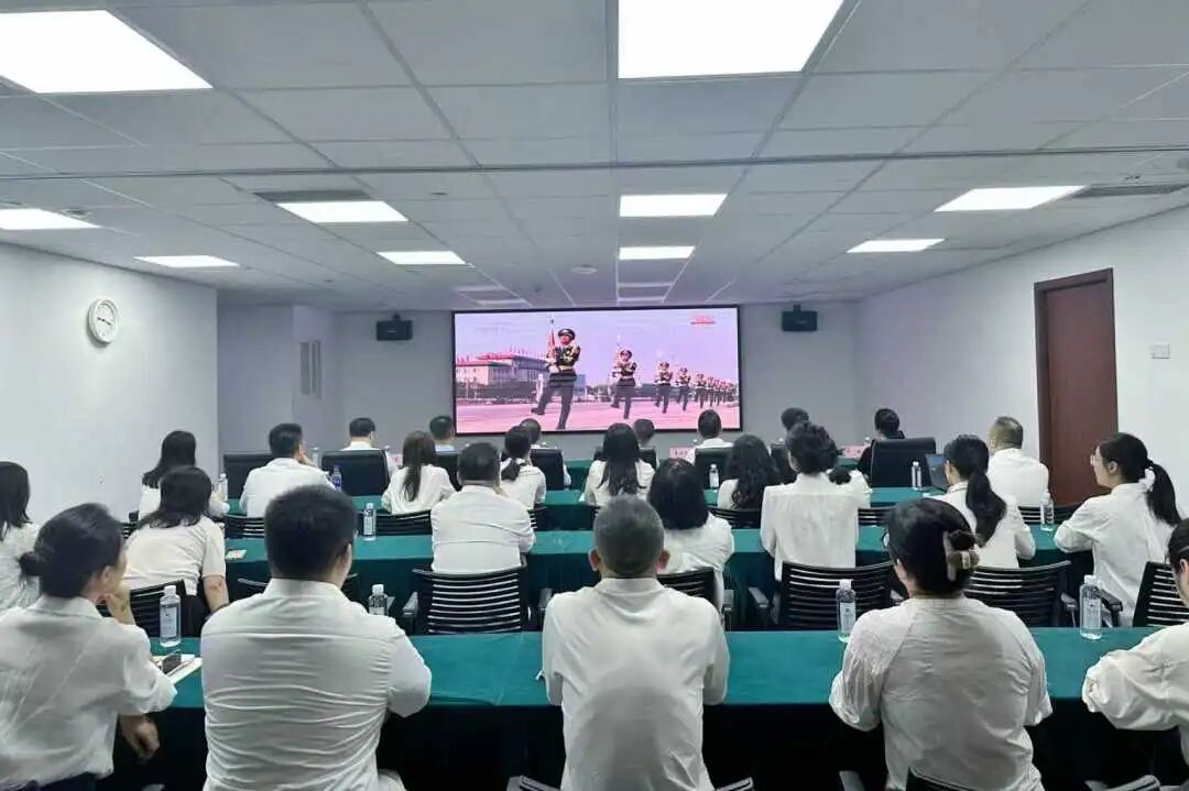 直播過程中,全體人員全神貫注地觀看活動盛況,認真聆聽習近平總書記的重要講話。莊嚴的天安門廣場上,三軍列陣,鐵甲生輝。一個個威武雄壯的受閱方隊、一件件彰顯國家實力的現代化武器裝備、戰(zhàn)士們鏗鏘有力的步伐和昂揚抖擻的精神風貌,充分展示了國家強大的國防力量和現代化建設取得的輝煌成就,展現了中國人民解放軍聽黨指揮、能打勝仗、作風優(yōu)良的強大實力,以及維護國家主權、安全、發(fā)展利益的堅定決心,以偉大的抗戰(zhàn)精神激勵我們奮勇向前!